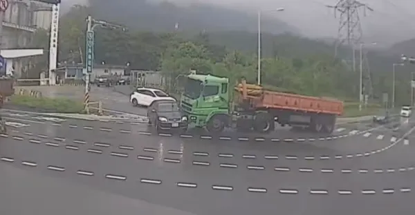 蘇澳台9線砂石車右轉不慎 轎車挨撞「慘被推著走」