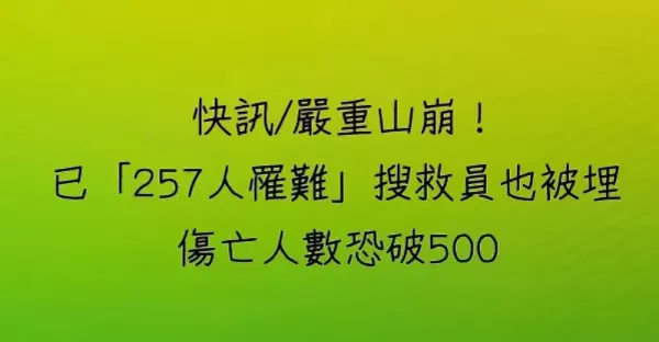 快訊/嚴重山崩! 已「257人罹難」 搜救員也被埋 傷亡人數恐破500