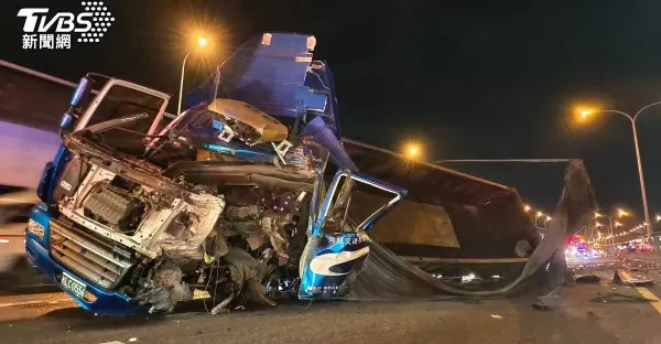 國一聯結車翻覆影響6線道!撞斷燈杆波及3車 駕駛OHCA