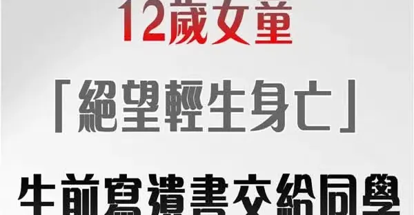 衝出教室一躍而下! 12歲女童「絕望輕生身亡」 生前「寫遺書交給同學」:希望你與爸爸復婚...