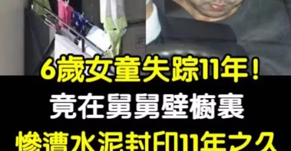 6歲女童失蹤11年 ! 竟在舅舅壁櫥里「慘遭水泥封印」「11年之久」腐臭沖天案情曝光: 父子聯手作案