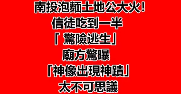 南投泡麵土地公大火!信徒吃到一半「驚險逃生」 廟方驚曝「神像出現神跡」:太不可思議!