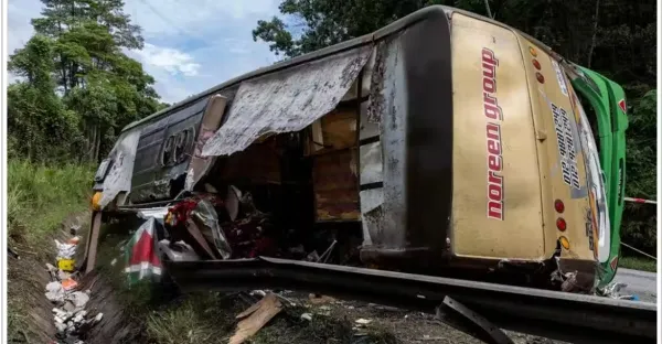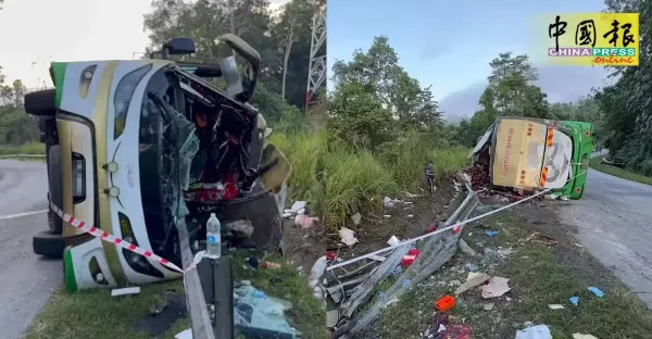 大學生巴士翻覆15人喪命|現場最新畫面曝光! 巴士呈90度翻覆路邊