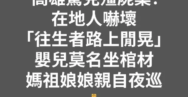 高雄殭屍奇案!在地人驚曝「往生者路上閒晃」嬰兒莫名坐棺材, 媽祖娘娘「親自夜巡」如今仍有怪事