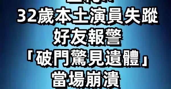 32歲本土演員失蹤!好友報警「破門驚見遺體」, 當場崩潰 #告別式時間曝光