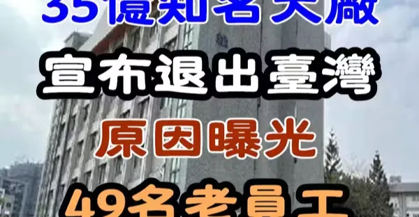 成立53年!35億知名大廠「宣布退出台灣」原因曝光 49名老員工「全數資遣失業!」