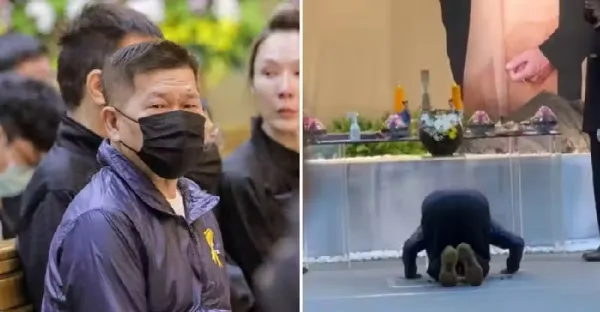 澎恰恰現身告別式!哀戚「磕頭3次」送別師父石英,不受訪低調離開