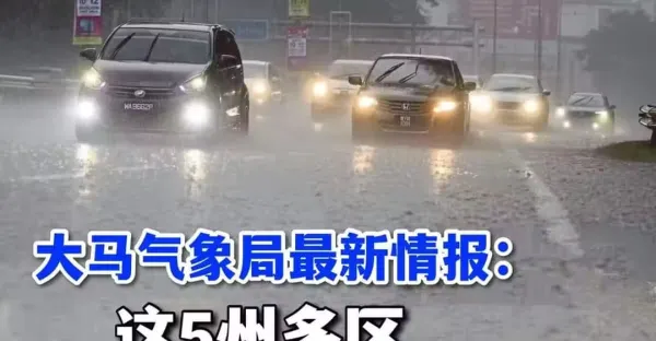 大馬雷雨最新情報,這5州多區今天將出現大雨!
