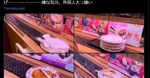 壽司郎迴轉台出現髒盤亂象,日人怒斥外國顧客不守規則,食安堪憂!