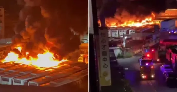快訊 / 台中凌晨大規模火警!客運總站遭祝融多輛公車「全面燃燒」