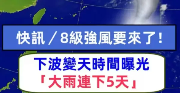 快訊/8級強風要來了!下波變天時間曝光「大雨連下5天」!