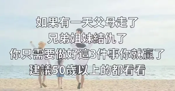 如果有一天父母走了,兄弟姐妹結仇了!你只需做好3件事,你就贏了!