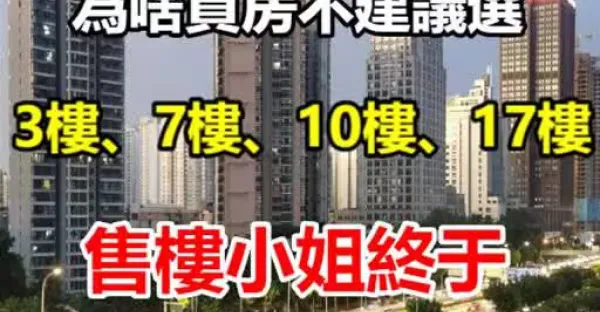 為啥買房不建議選,3樓、7樓、10樓、17樓!售樓小姐終於說出了真相!