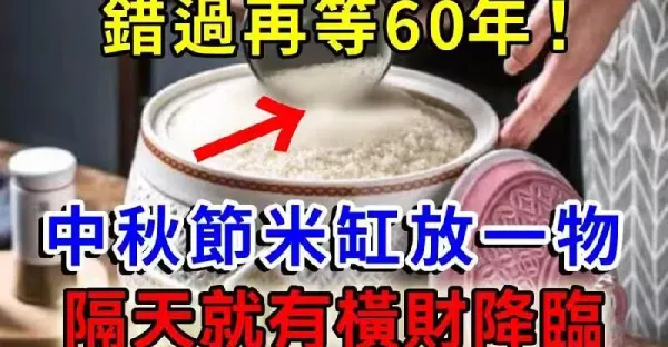 錯過再等60年!八月十五中秋節,只要在米缸放一物,隔天就有橫財降臨,再窮都能改命!