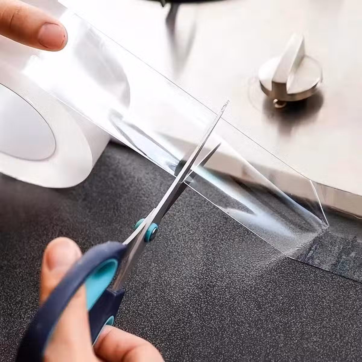 撕掉了透明膠條,結果上面的膠體,直接黏在了灶台上,怎麼扣都扣不掉,灶台變得又丑又難看。