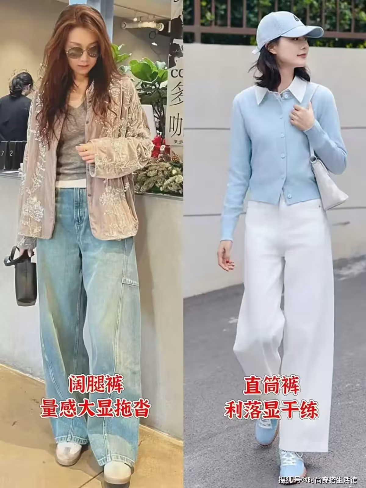 ⑴闊腿褲量感大顯拖沓,直筒褲穿上更利落