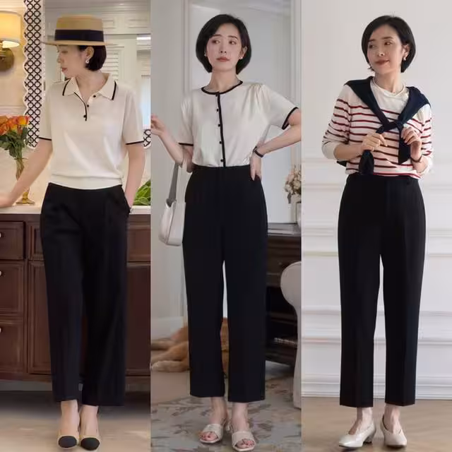 對於中年女人來說,不妨可以換成經典基礎色的長褲,例如黑色、白色、灰色、藏青色、米色等,都是中年女人的首選色,好看百搭不出錯。