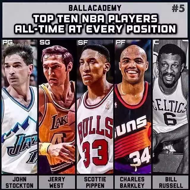 斯托克頓,這位被視為最偉大控衛之一的球員,儘管一生未能染指總冠軍,但他的生涯助攻數和搶斷數均傲居歷史榜首。韋斯特被譽為「湖人教父」,在60年代那個群雄逐鹿的時代,他宛如一顆耀眼的流星,成為最具代表性的球員之一。皮蓬,作為喬丹身旁的得力助手,攻防兩端都表現出色,堪稱史上最出色的二當家。他與喬丹攜手,為芝加哥公牛隊帶來了無數的榮耀。