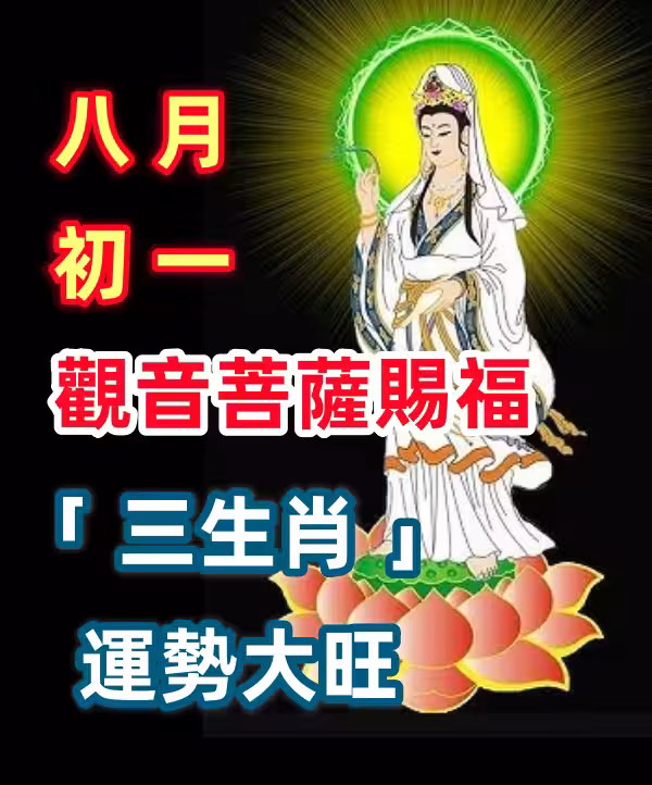 「八月初一 」 觀音菩薩賜福「 三生肖 」運勢大旺