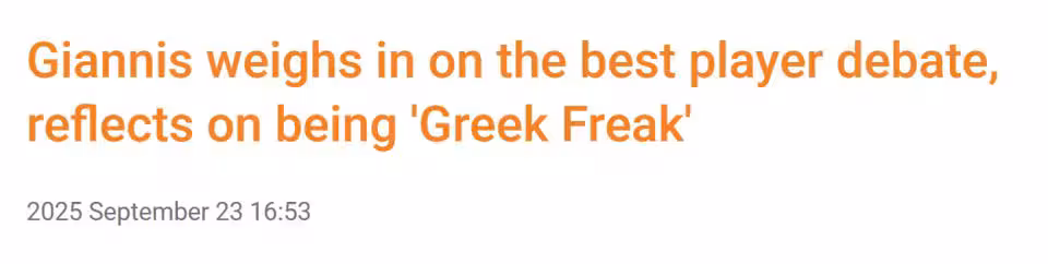 9月23日,公鹿巨星字母哥接受希臘媒體Sports24採訪,暢談名氣、家庭與責任,同時拒絕將「世界最佳球員」的頭銜歸於自己,強調比起榮譽,努力、領導力與品格才是更重要的追求。