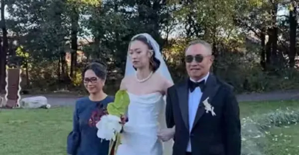 霍震霆朱玲玲出席三兒子婚禮,現場布置簡單,不及當年霍啟剛婚禮
