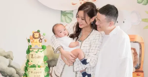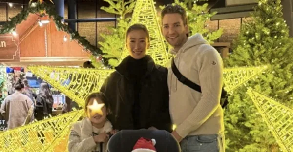 謝婷婷一家聖誕外出,半歲兒子戴聖誕帽亮相,小7歲男友抱娃喂奶