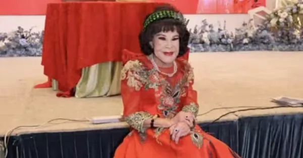 黃夏蕙95歲大壽設宴60桌,一身紅裝好喜慶,丈夫與六個子女沒現身