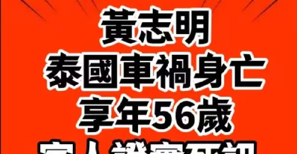 黃志明泰國交通事故身亡享年56歲 家人證實死訊「遺體運回大馬」