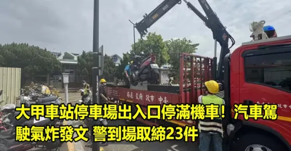 大甲車站停車場出入口停滿機車!汽車駕駛氣炸發文 警到場取締23件