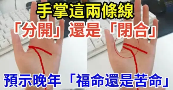 手掌這兩條線「分開」還是「閉合」 預示晚年「福命還是苦命」:太准了!