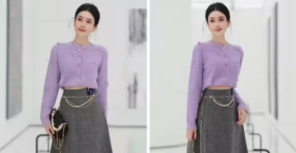 朱珠機場穿搭太絕了!淺粉上衣配半裙,復古又優雅好吸睛